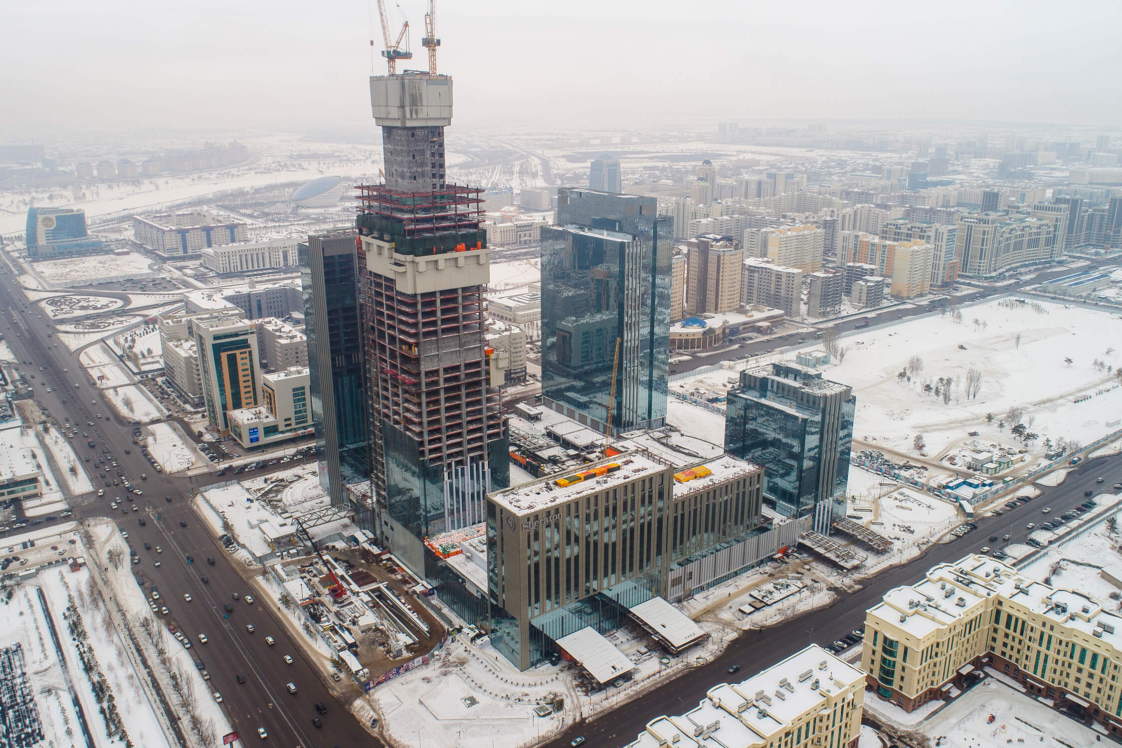 Prestigious mixed-use development in Astana featuring luxury residences, office spaces, and retail areas with innovative steel construction and facade systems.