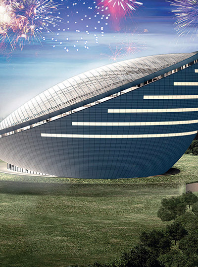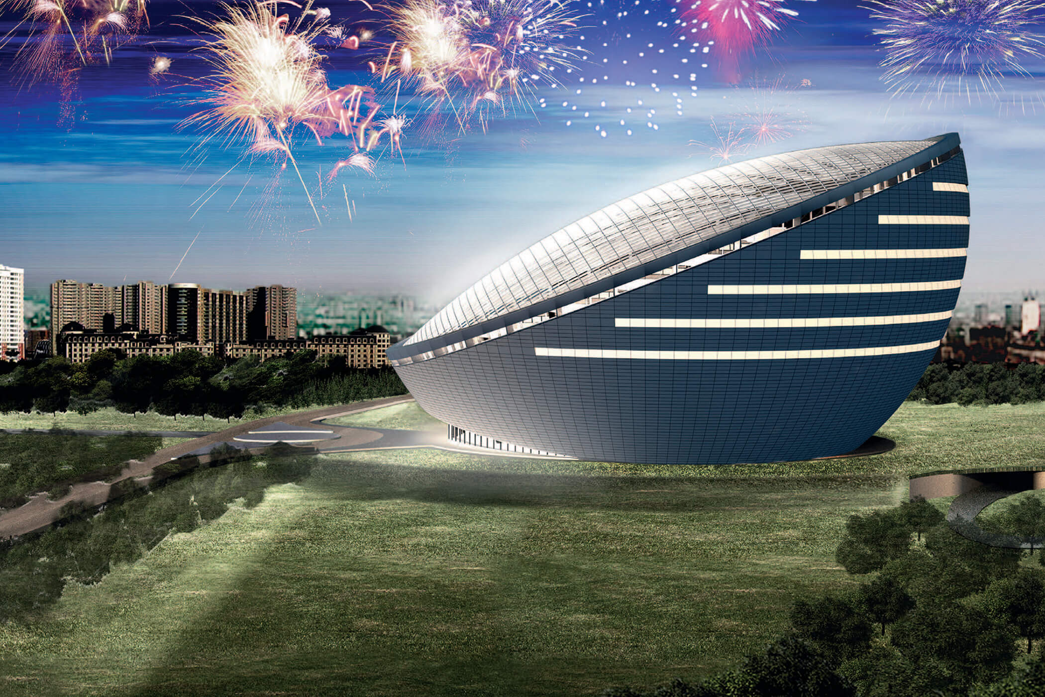 Modern national library featuring innovative steel structure and contemporary architectural design.
