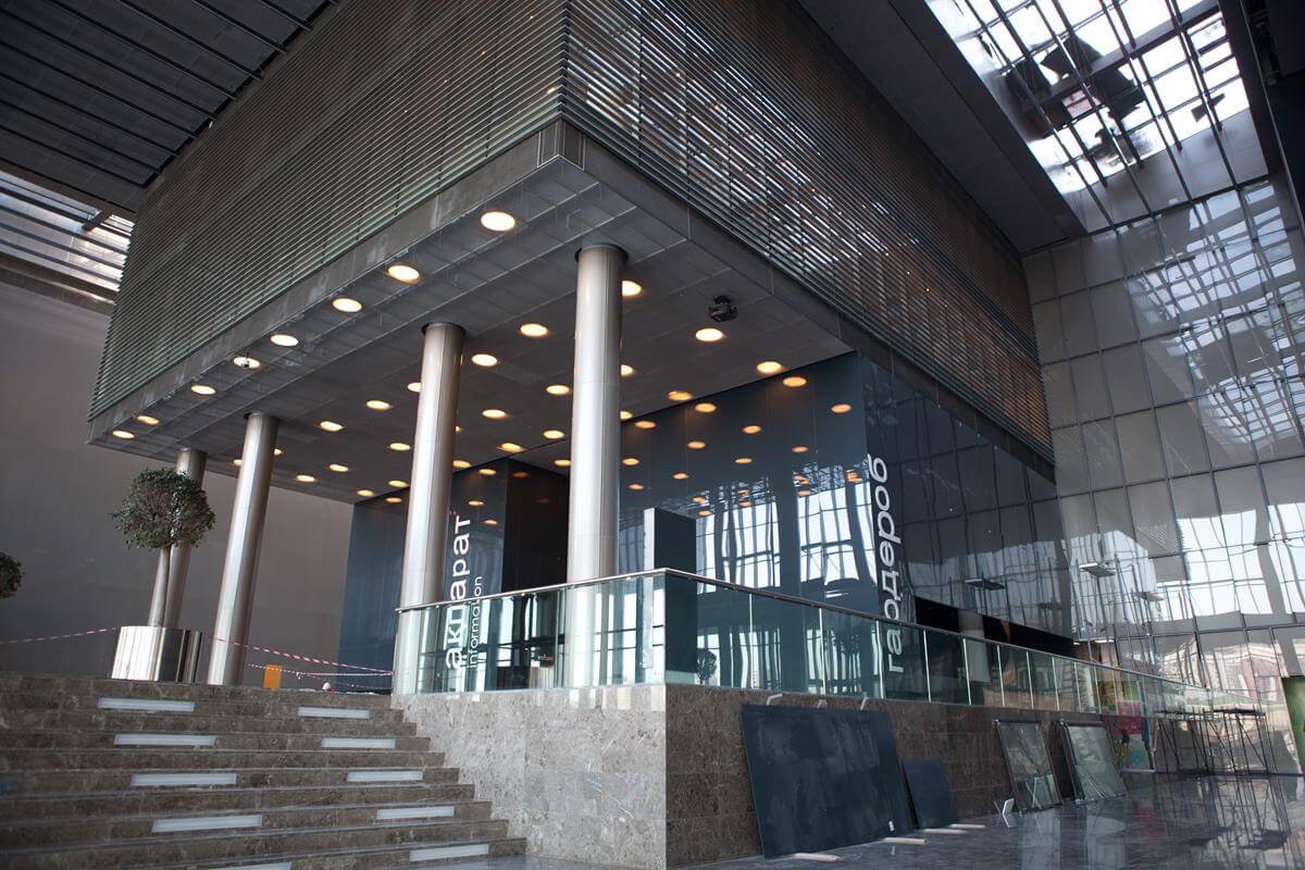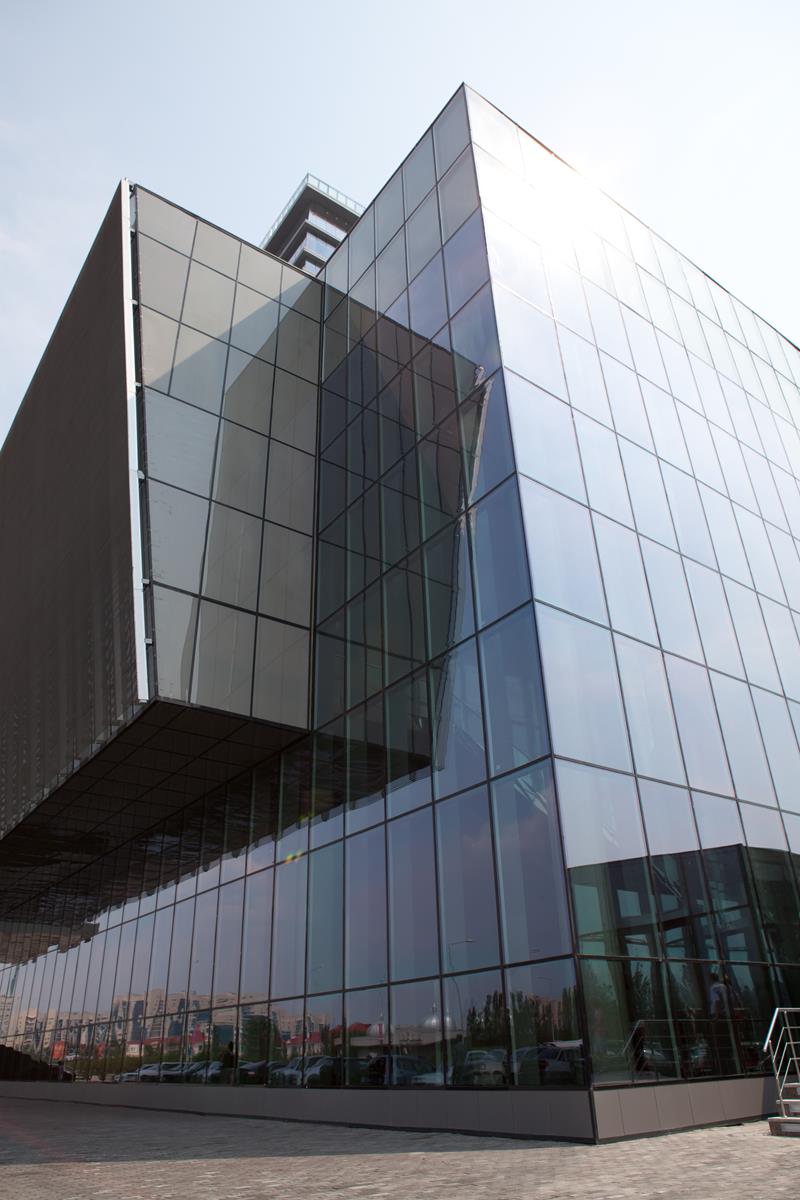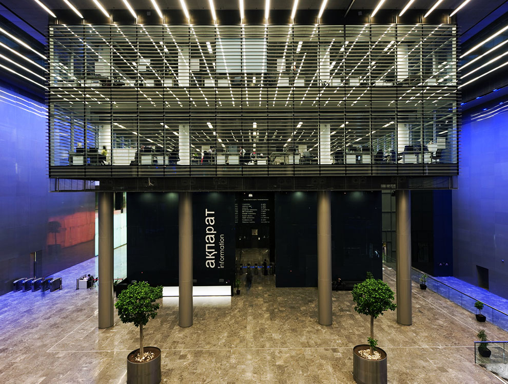 Modern media and broadcasting complex featuring advanced steel construction and state-of-the-art production facilities.