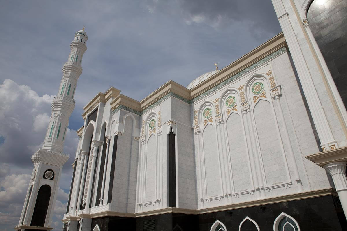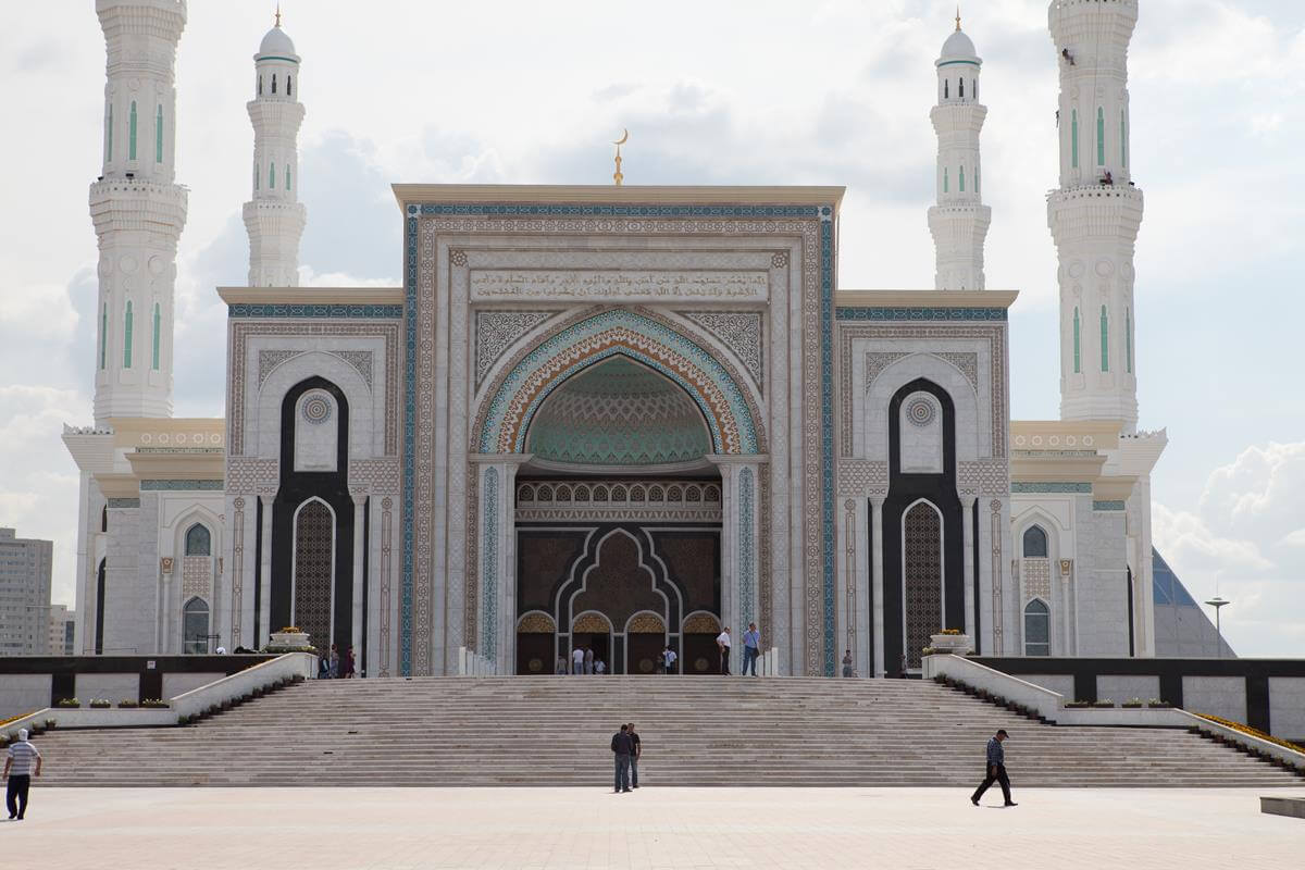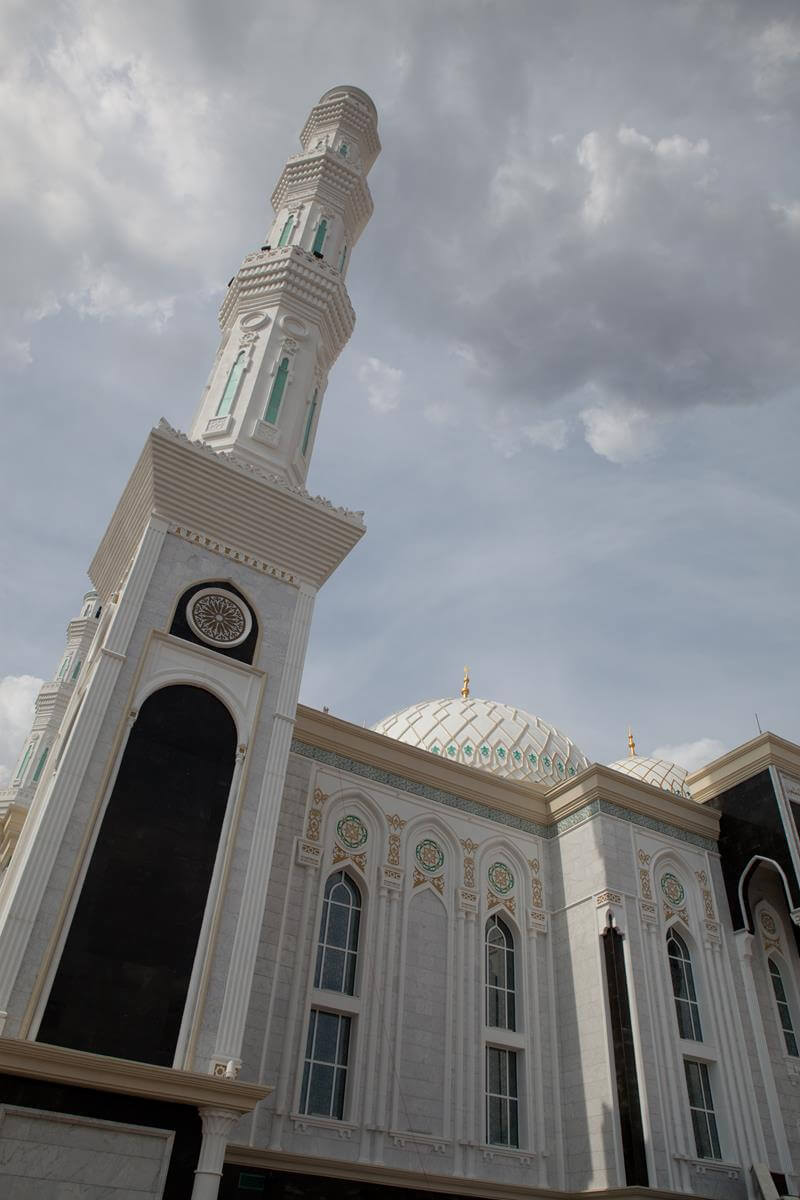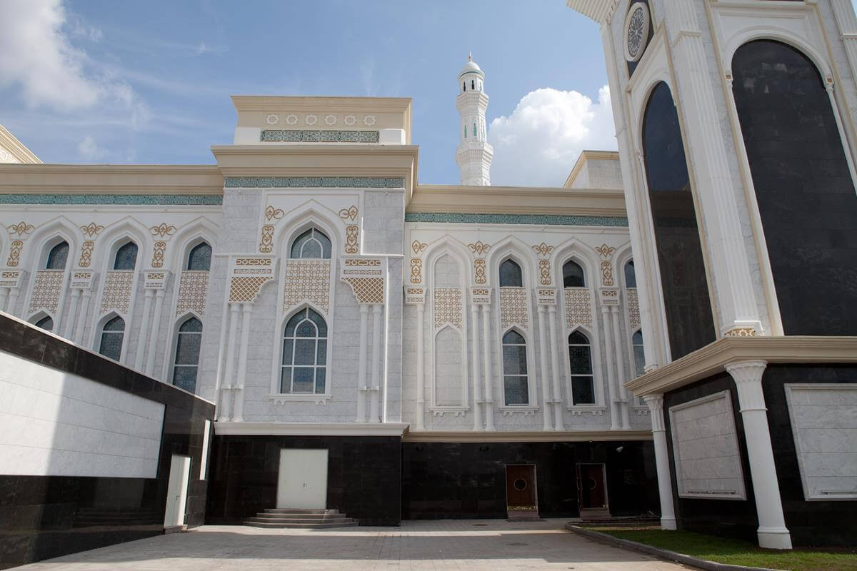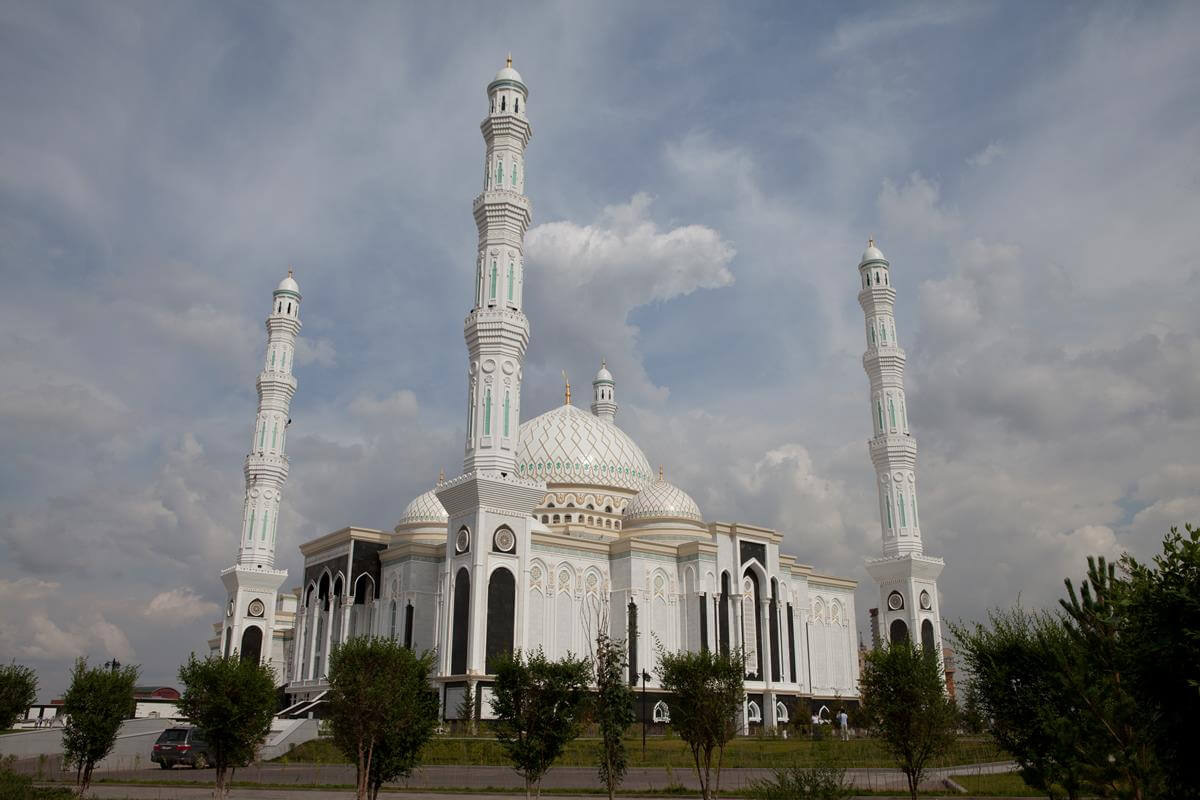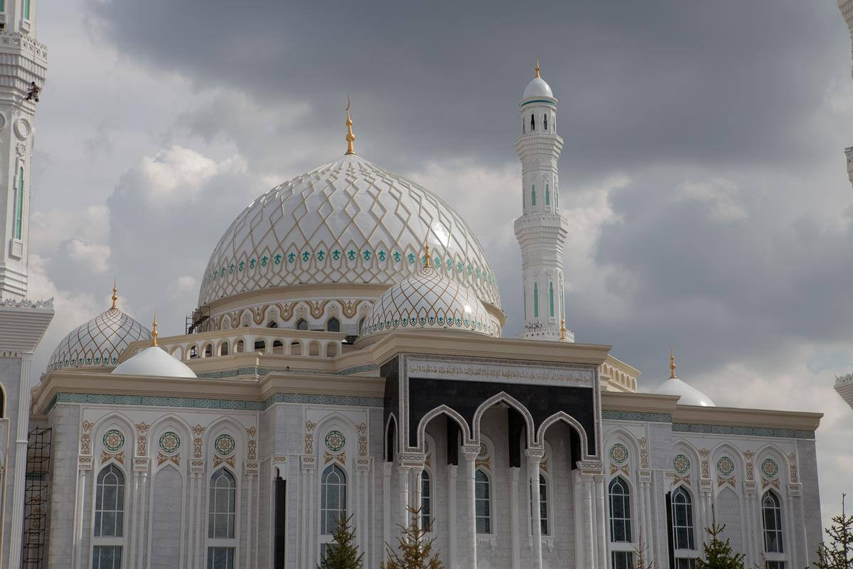 Central Asia's largest mosque featuring traditional Islamic architecture with modern steel construction techniques.
