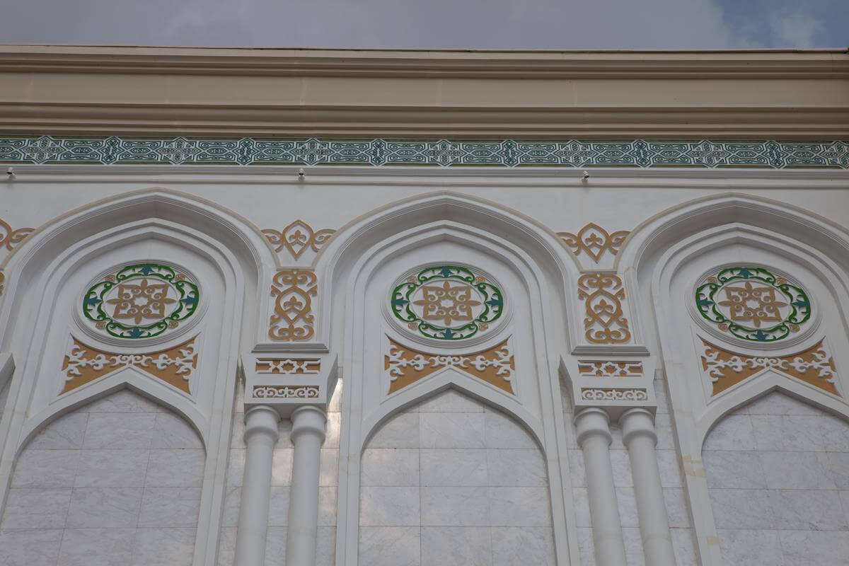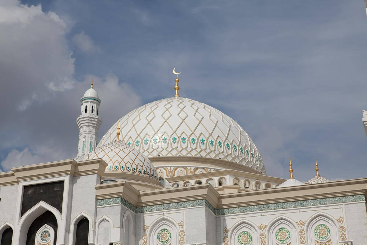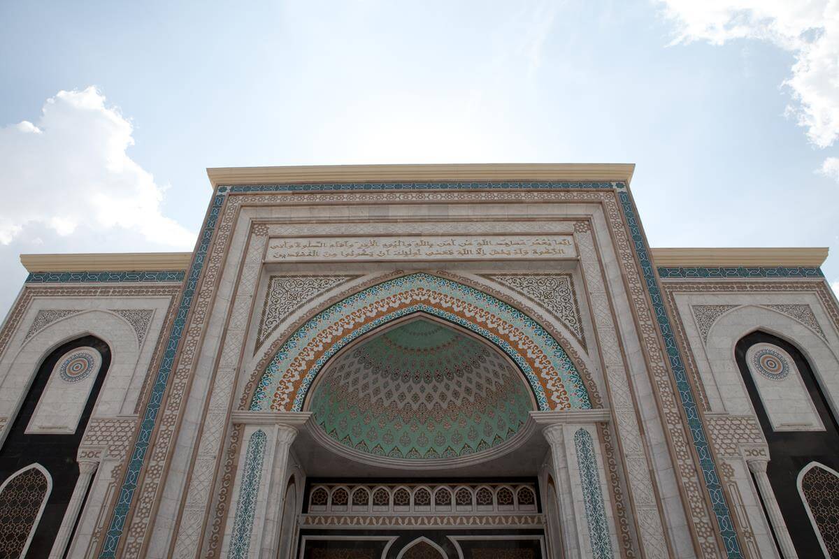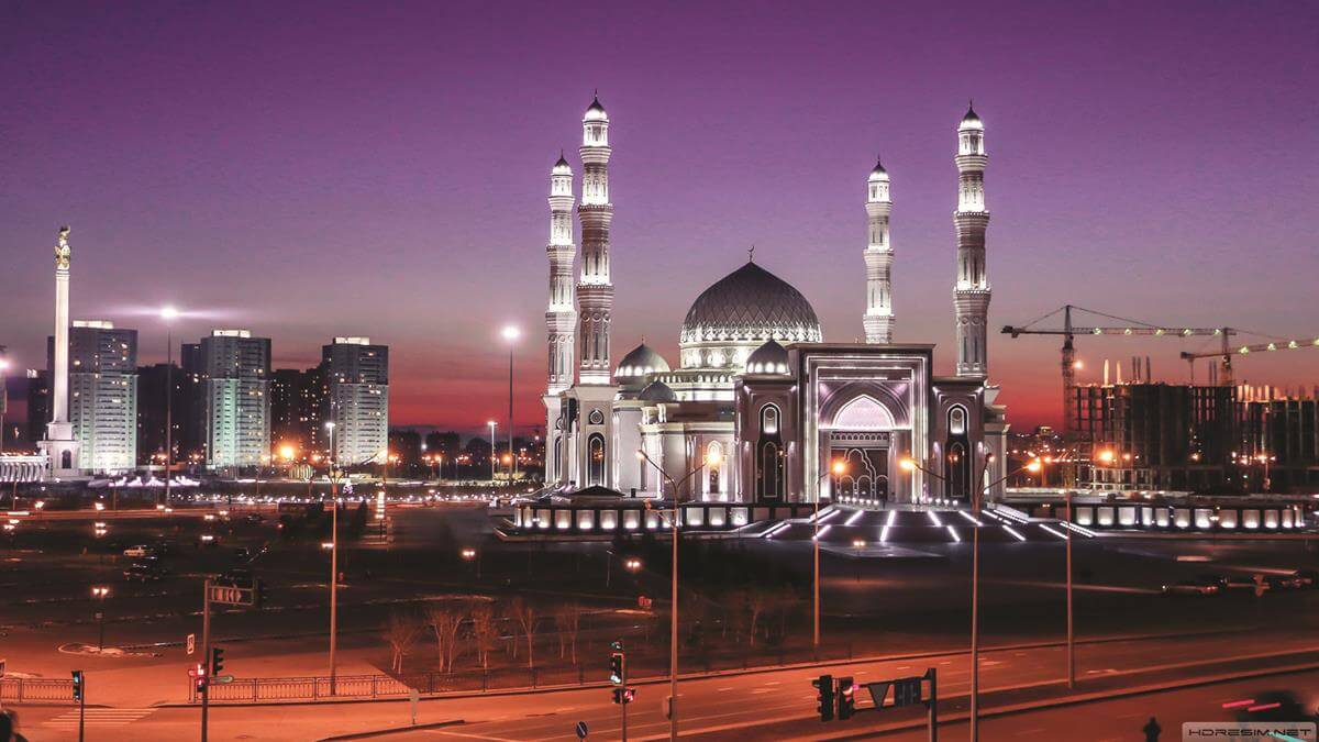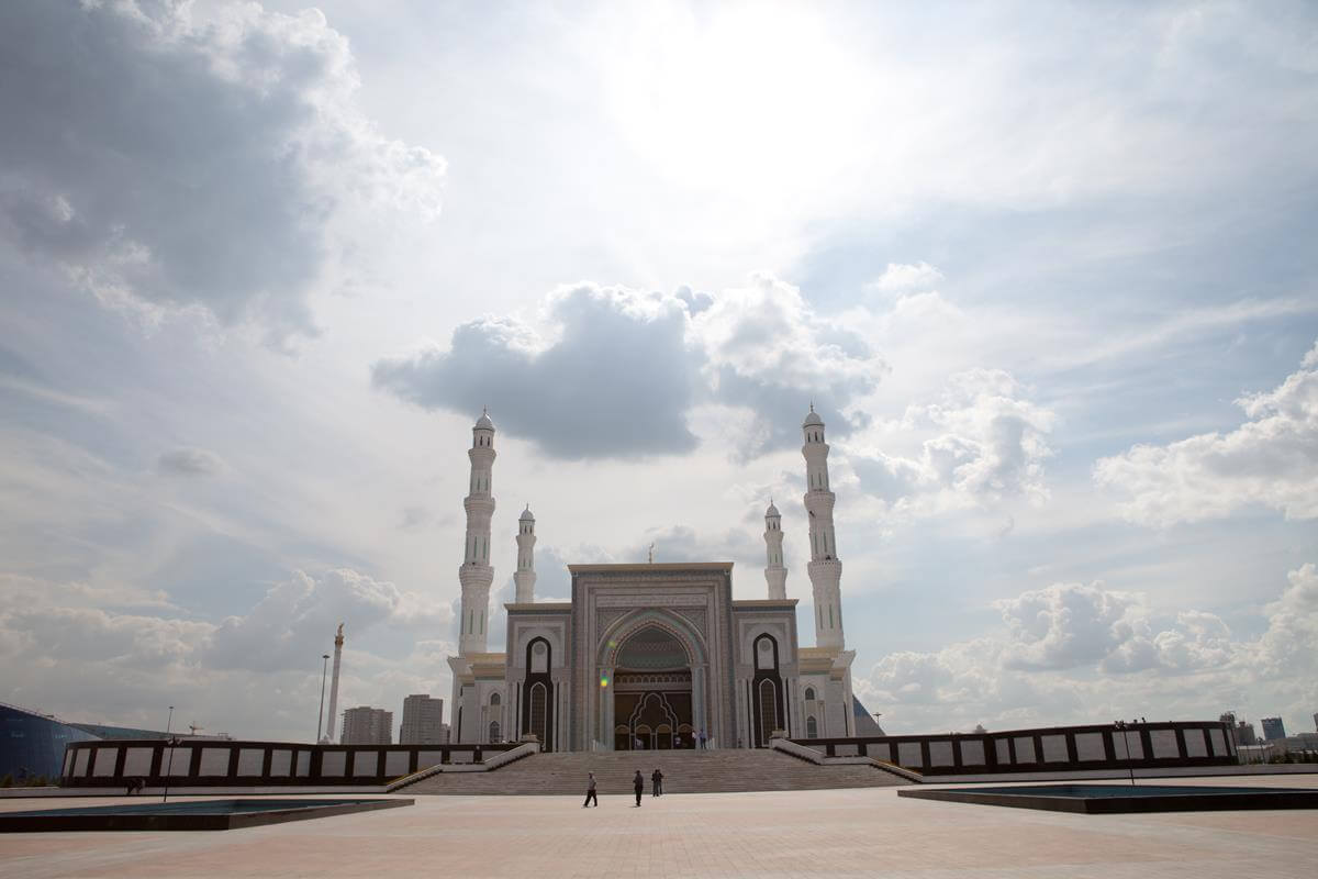 Central Asia's largest mosque featuring traditional Islamic architecture with modern steel construction techniques.