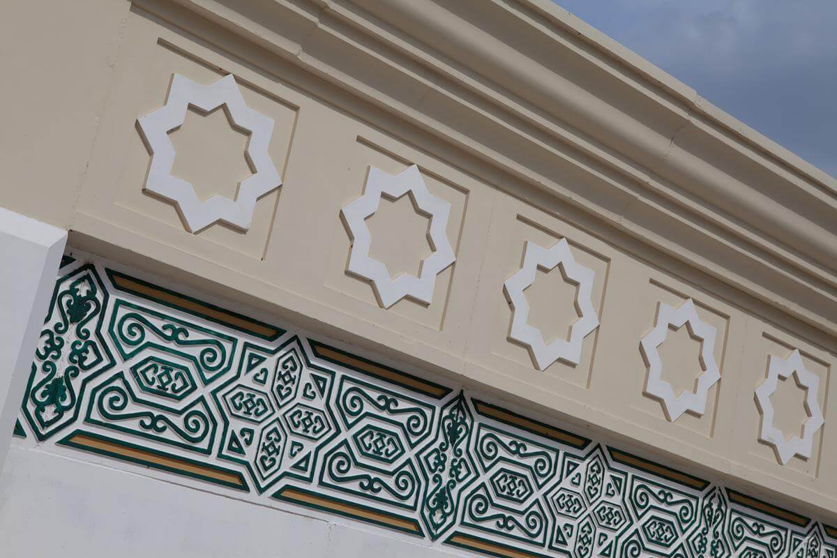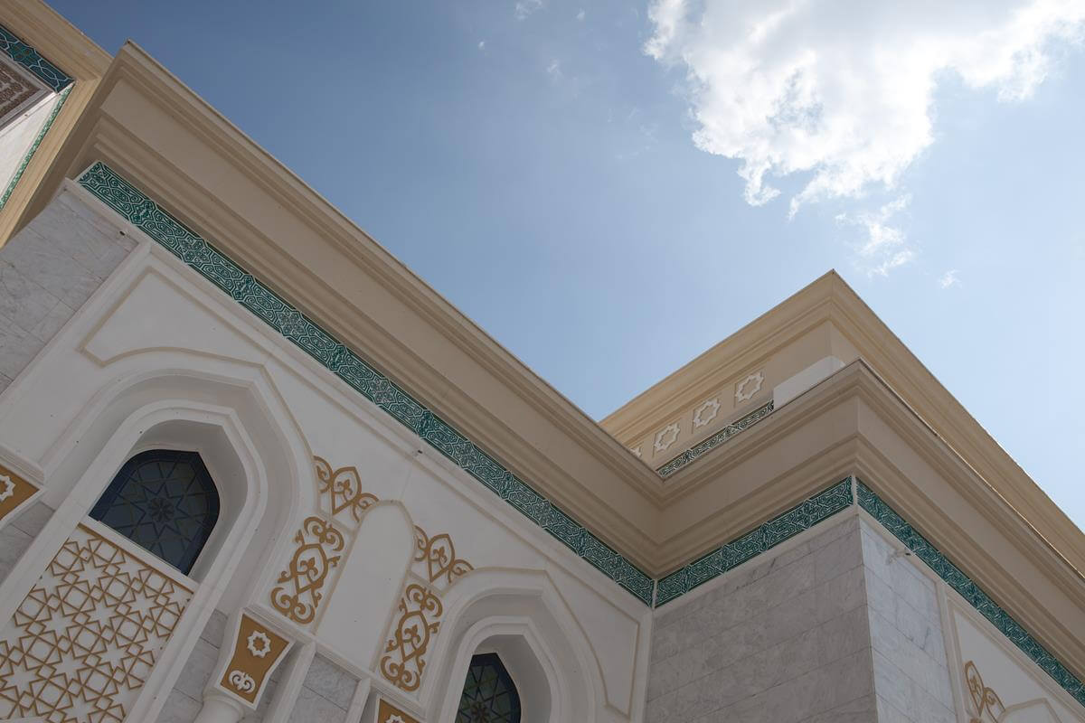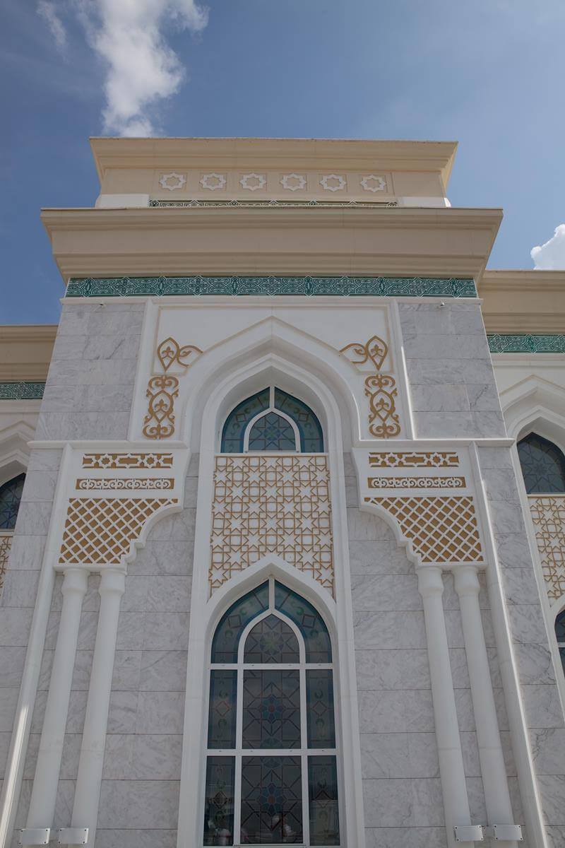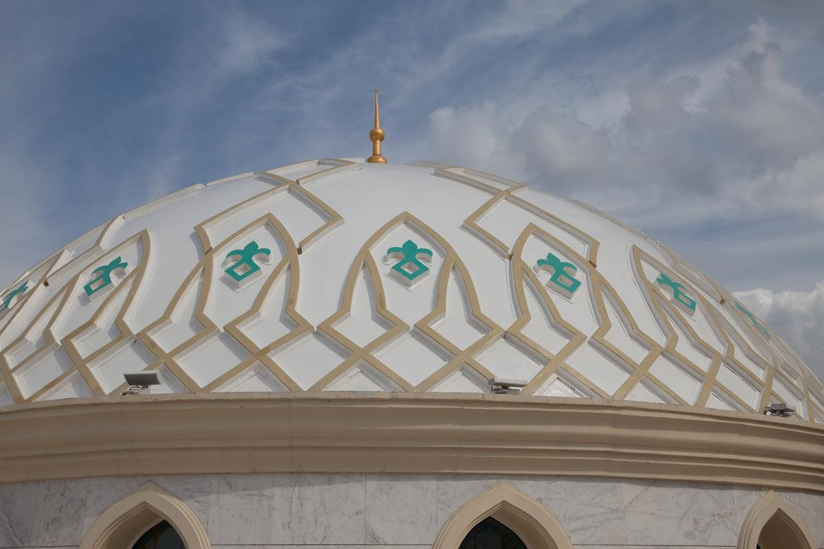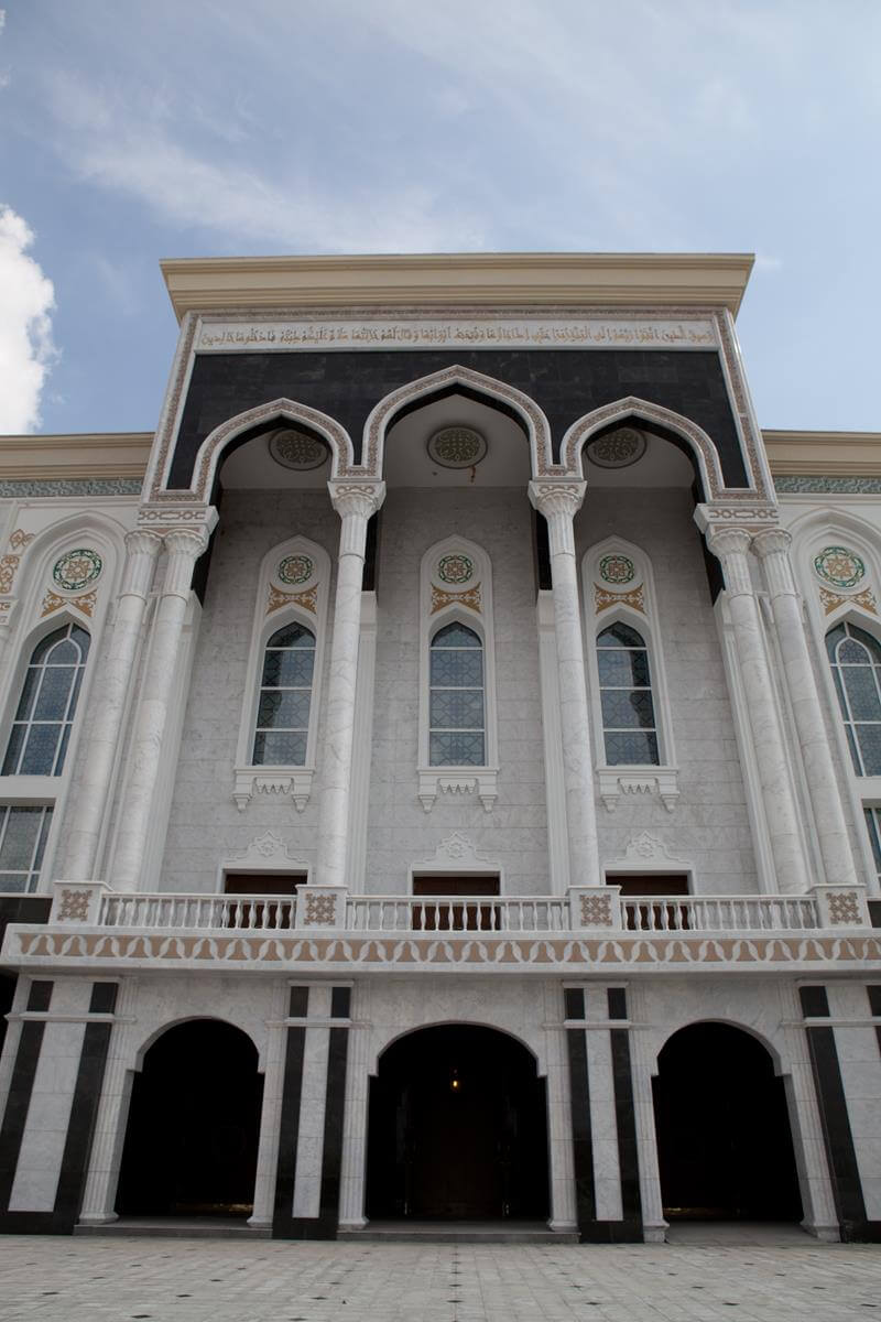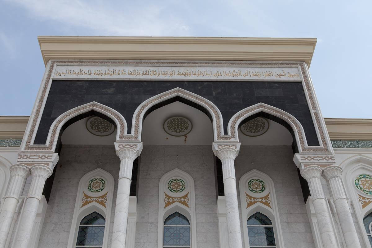 Central Asia's largest mosque featuring traditional Islamic architecture with modern steel construction techniques.