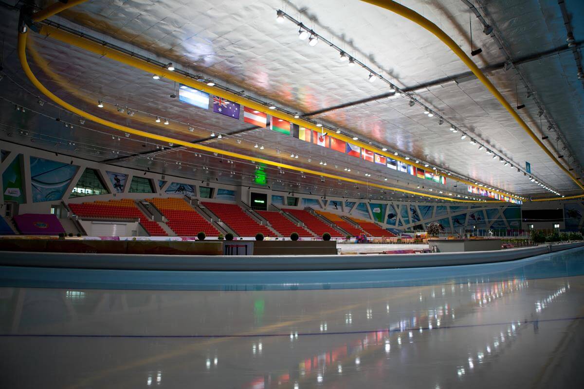 World-class ice skating and winter sports facility featuring advanced steel construction and climate control systems.