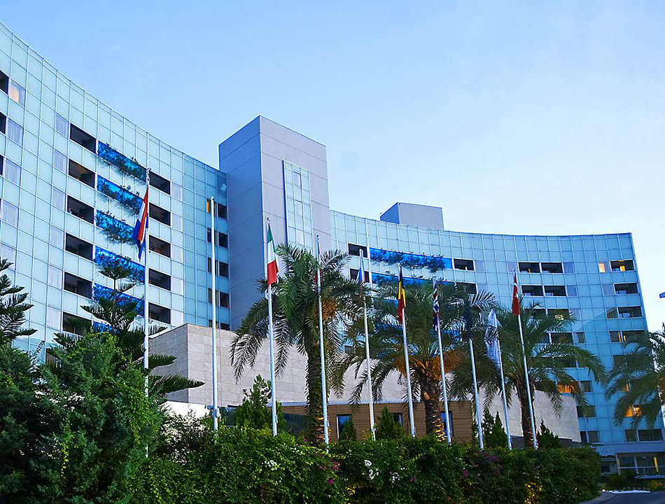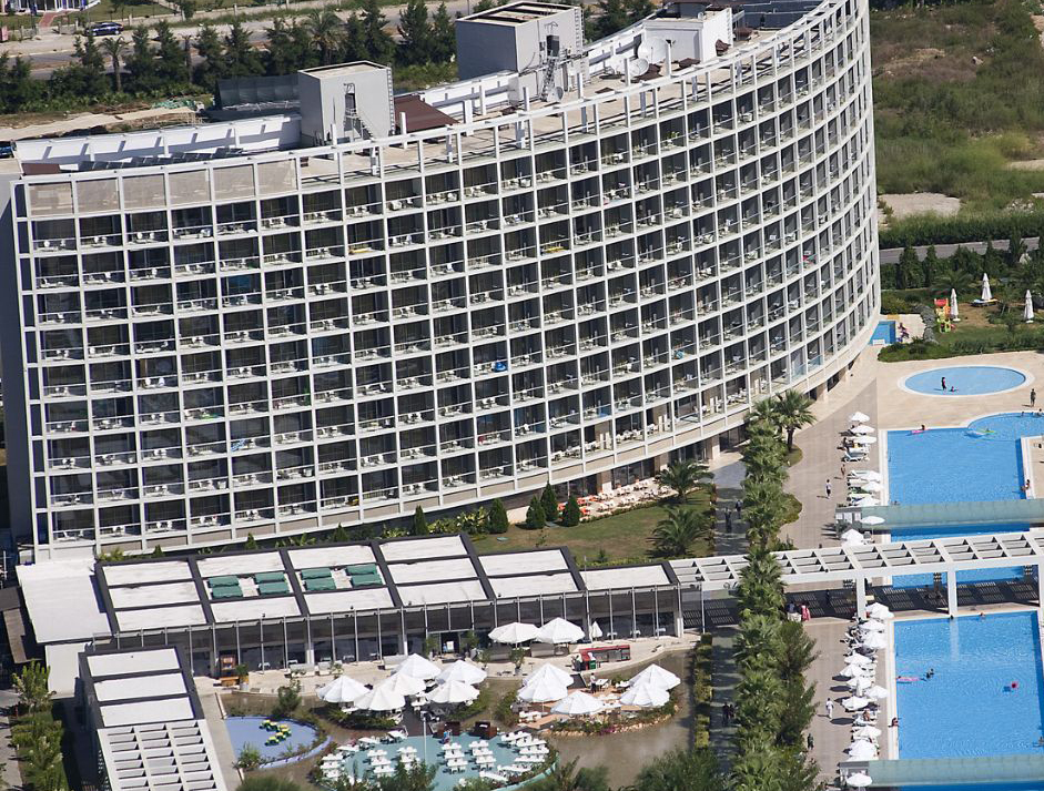 Traditional-style hotel with modern steel construction and luxury amenities.