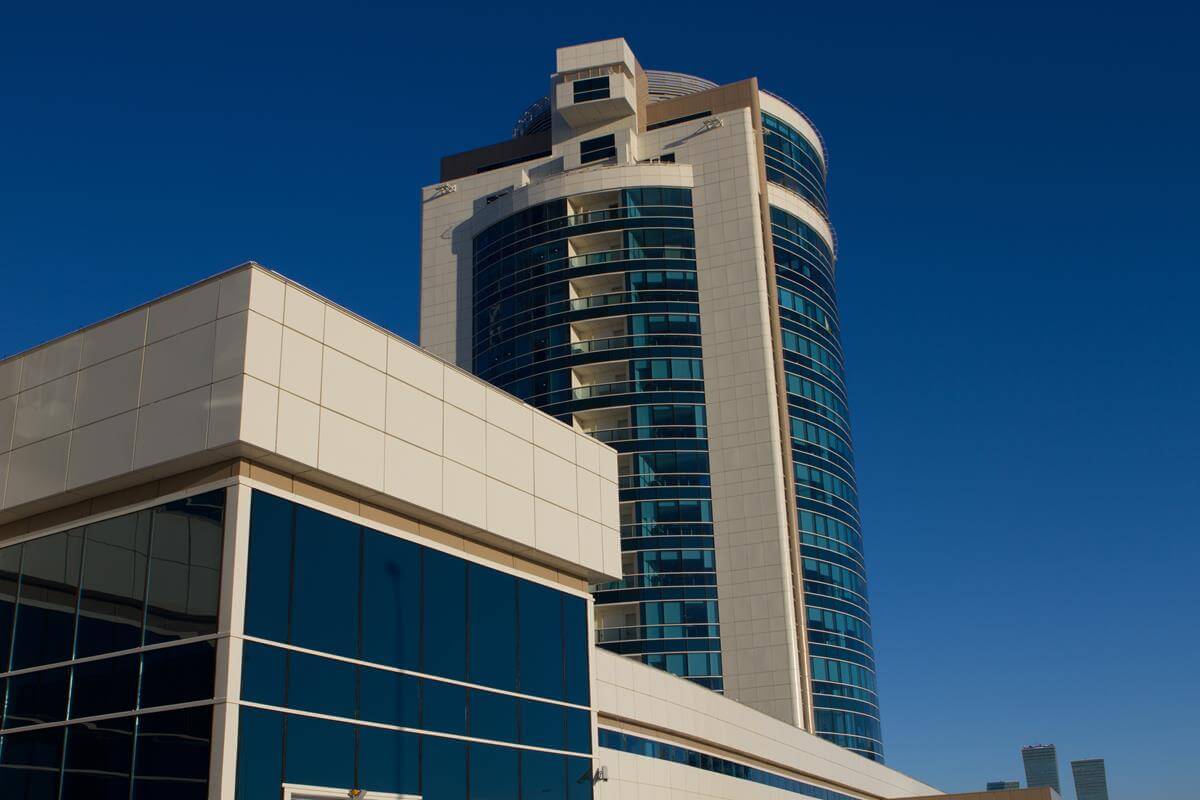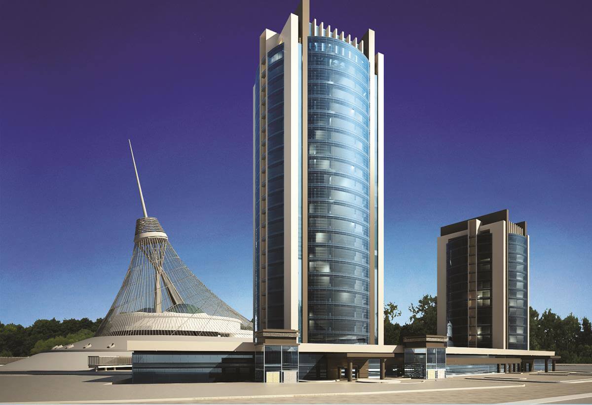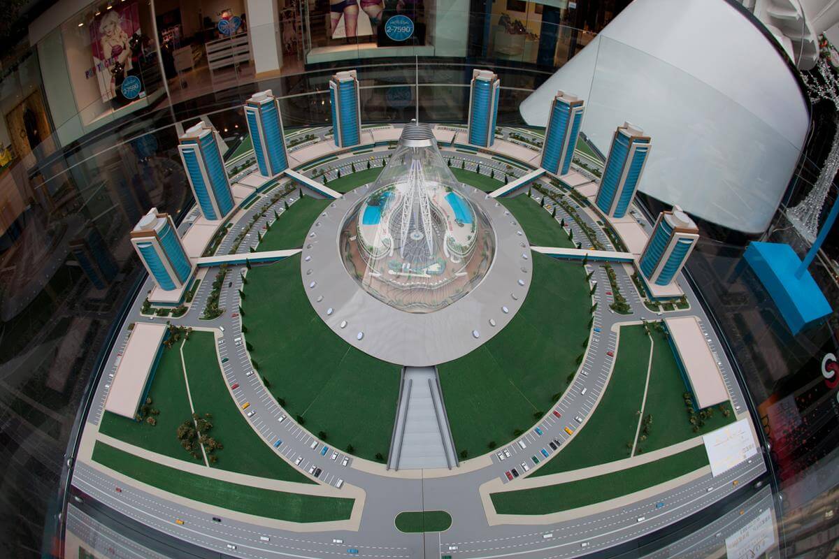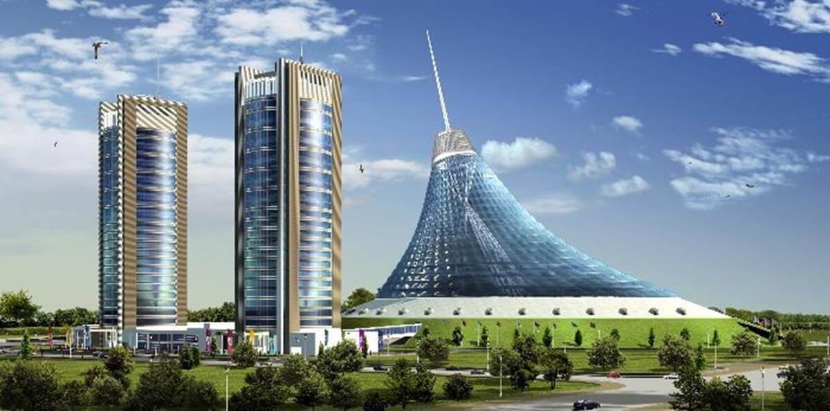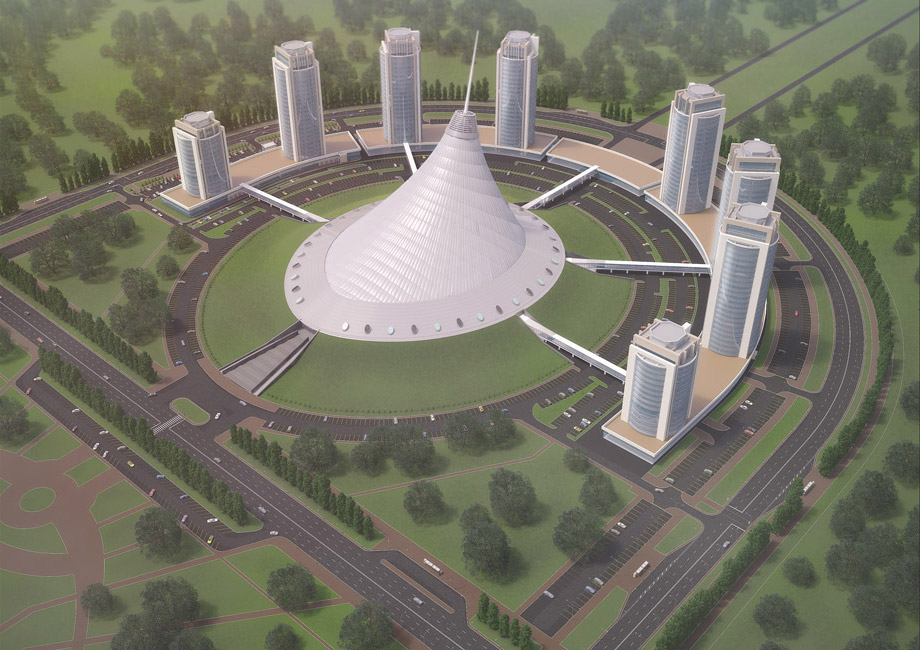 Luxury residential complex adjacent to the iconic Khan Shatyr entertainment center with premium amenities.