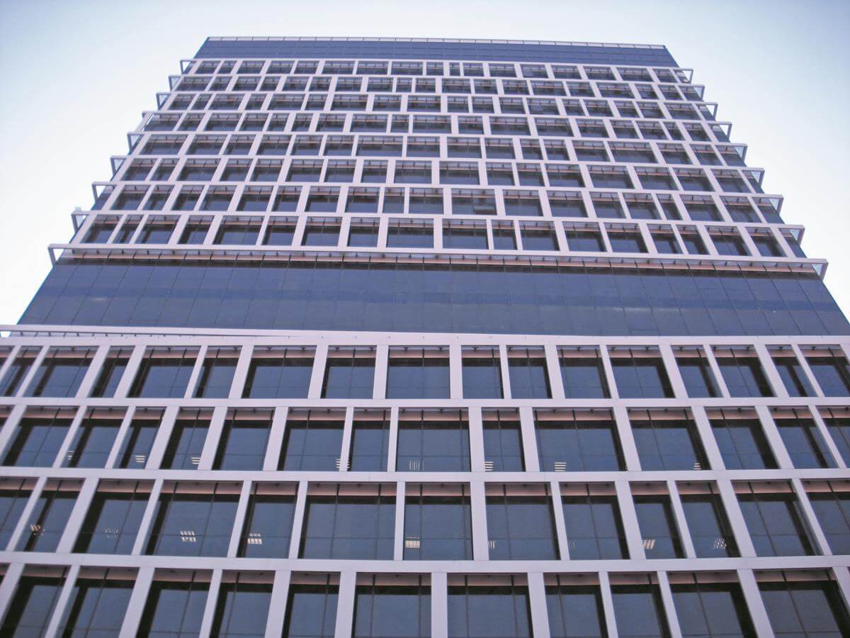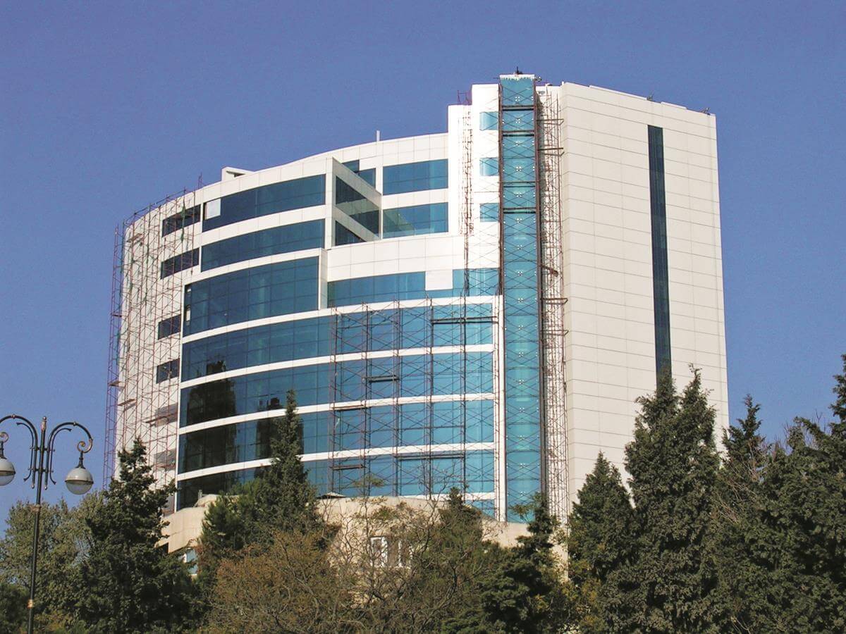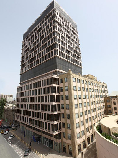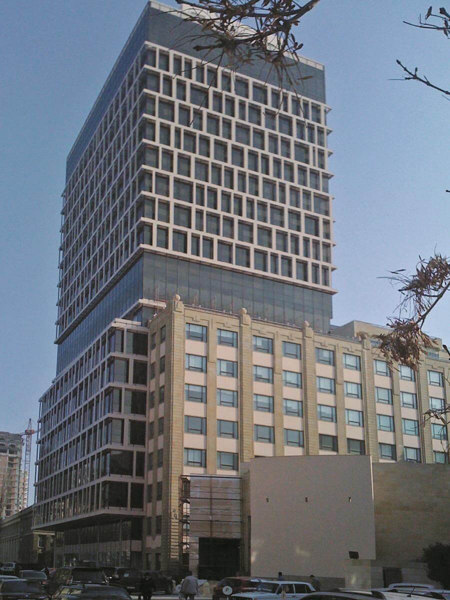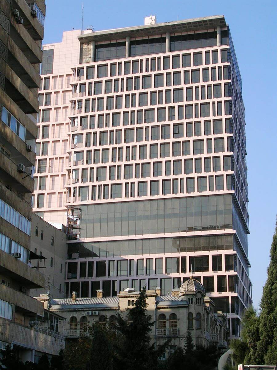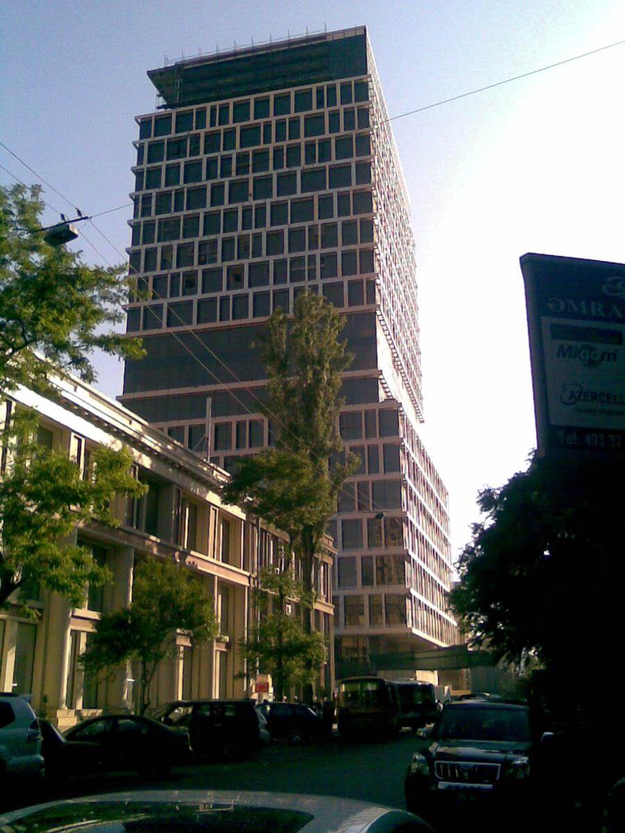 Premium commercial tower in Baku featuring modern steel construction and corporate office spaces.