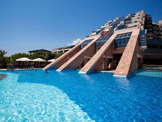 Resort hotel featuring modern facade systems and comprehensive hospitality facilities.