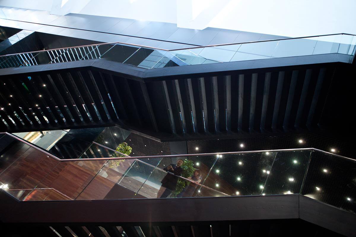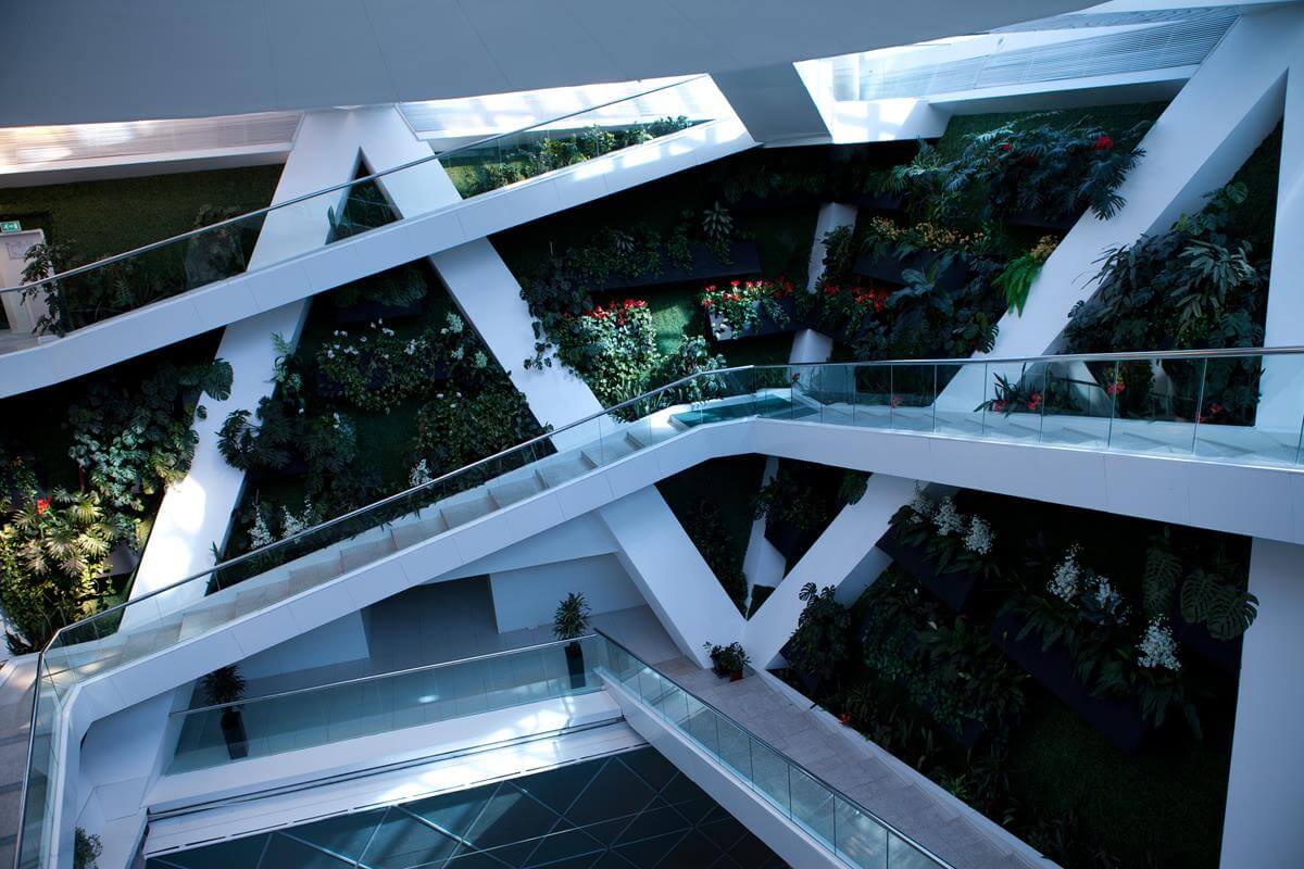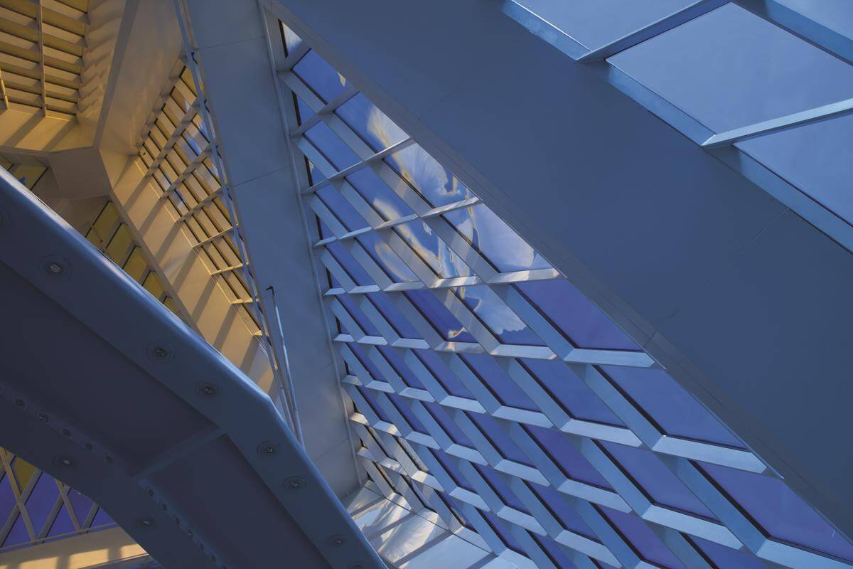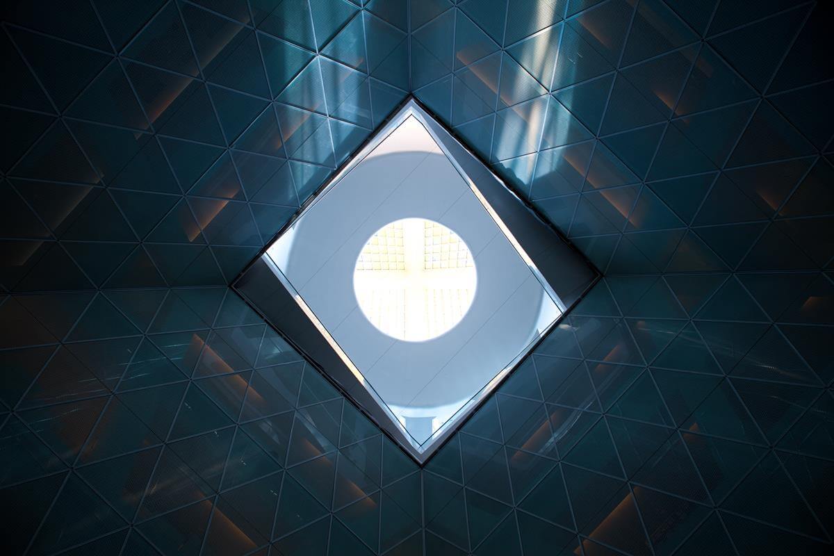 Iconic pyramid-shaped structure designed by Norman Foster, featuring advanced steel and glass construction.
