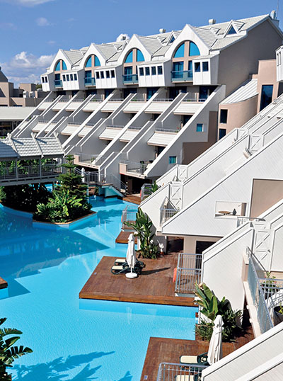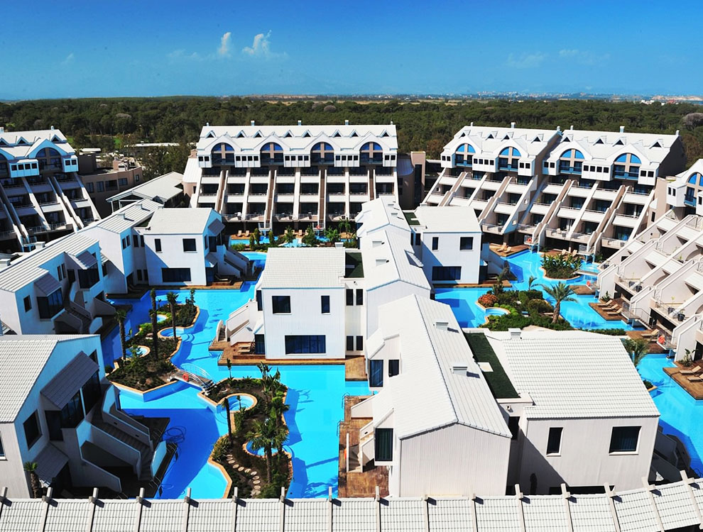 Luxury beachfront resort in Antalya featuring innovative steel construction and premium hospitality facilities.